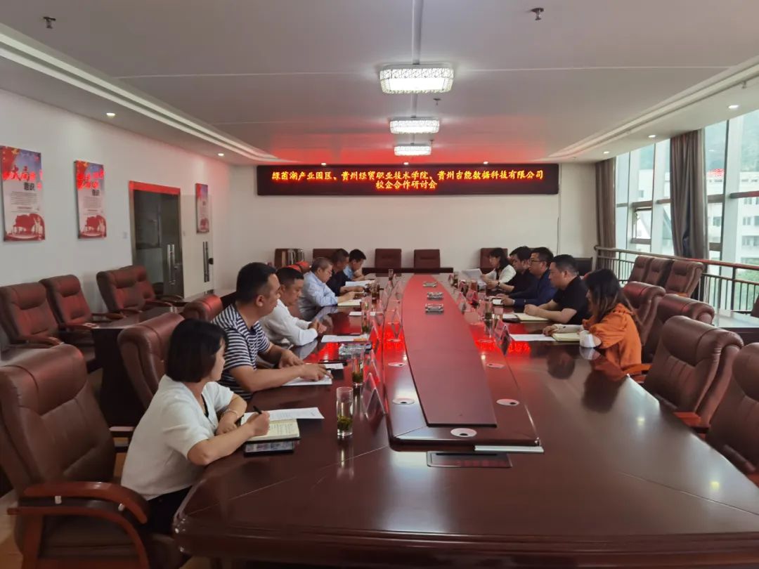 5月16日,绿茵湖产业园区服务中心组织召开校企合作研讨会,贵州经贸职业技术学院、贵州吉能数据科技有限公司相关负责人参加会议,就成立人才实训基地相关事宜进行研究讨论。