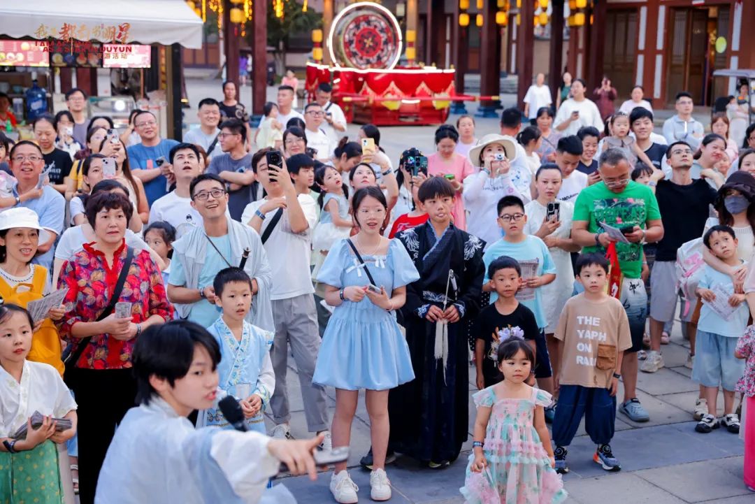 夜场的互动任务也拉开了序幕,游客们依旧可以选择不同身份,参与“百戏坊”游戏挑战,“月不还”花魁互动、“天星阁”神秘占卜等体验活动,与身着古装的NPC展开精彩对戏。