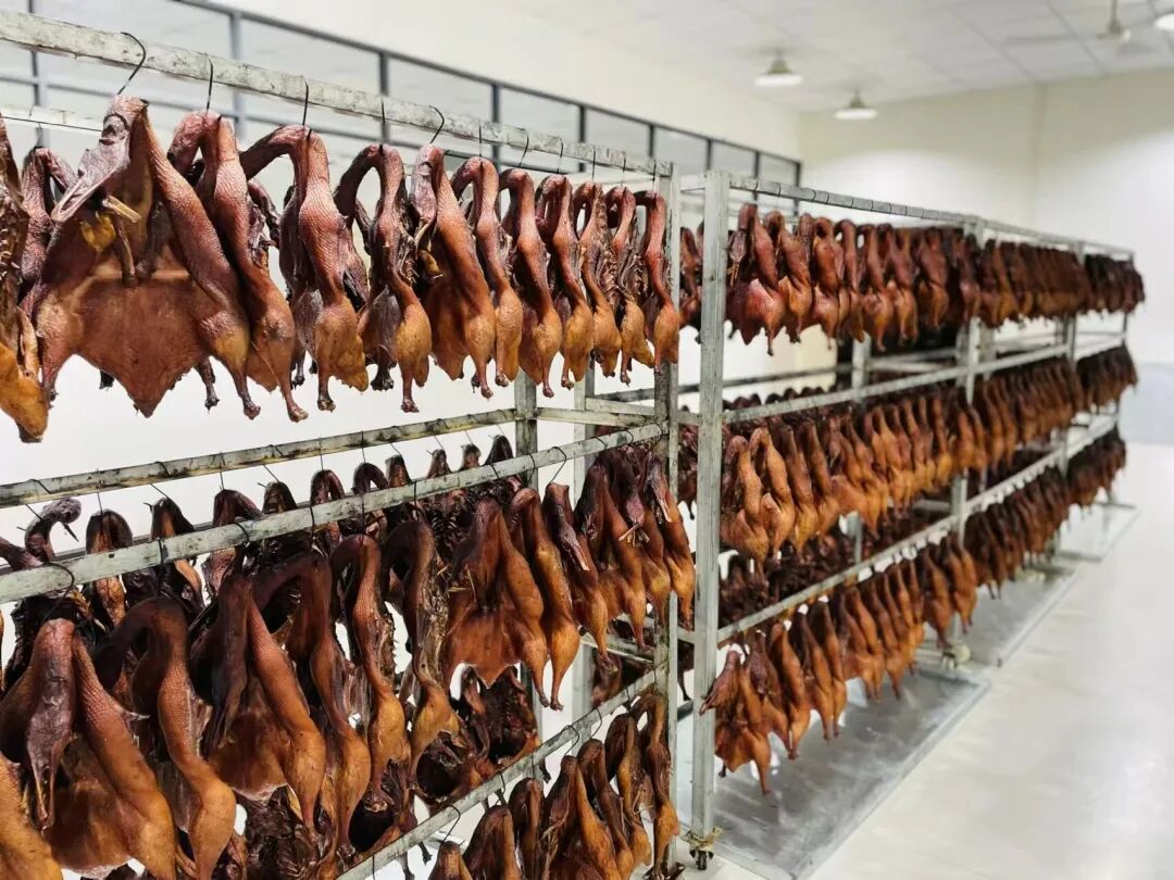2021年底,经过充分的考察与谋划,团队正式启动建厂项目。研发之路远比想象中艰难,为了调试出最完美的口感,他们不断调整配方、改进生产方式,仅调试阶段就经历了无数次失败,其中最多的一次,直接报废了2万多只鸭子。通过系统性的产品研发、技术革新和设备的升级改造,以及对群众消费观念、消费场景、口味等的深入研究,2022年12月,他们的第一款核心产品——毛尖茶香鸭成功问世。