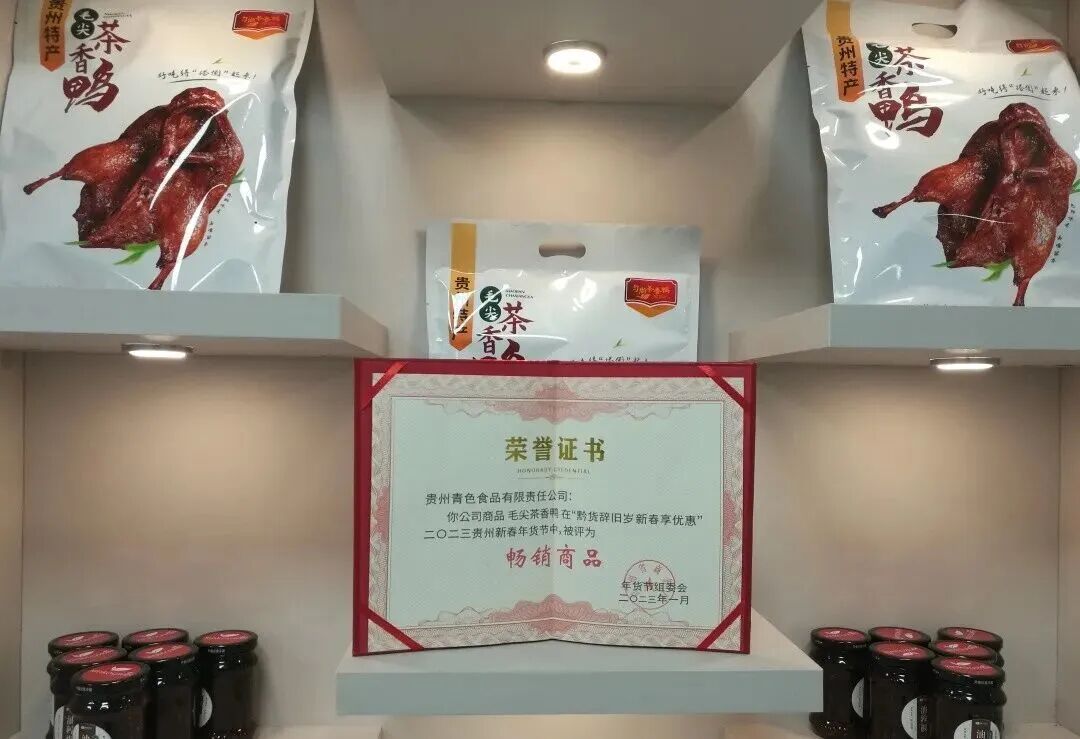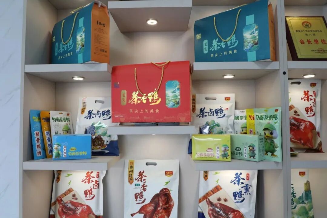 为了找准核心食材,蒋伟开启了细致的市场调研,鸡鸭鹅猪牛羊等常见食材都被纳入考量范围。他们还专程前往河北、江西、北京、南京等地考察,发现鸭子相关的品牌遍布市场,煌上煌、周黑鸭、全聚德等知名品牌早已验证了鸭肉产品的市场接受度。更重要的是,鸭子全身是宝,鸭血、鸭肠、鸭舌、鸭头等都能开发成特色美食,覆盖人群广,商业价值潜力巨大。与此同时,黔南地区茶叶种植广泛,但夏秋茶的使用率始终不高,若能将夏秋茶与鸭肉结合,既能提升茶叶附加值,又能打造地域特色标签产品。多重考量之下,两人最终达成共识,确定以“茶食”为核心方向,进军预包装茶食品行业,成立贵州青色食品有限责任公司。