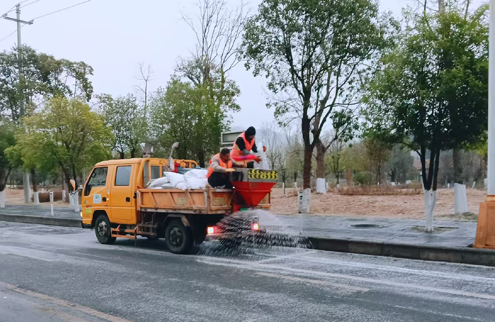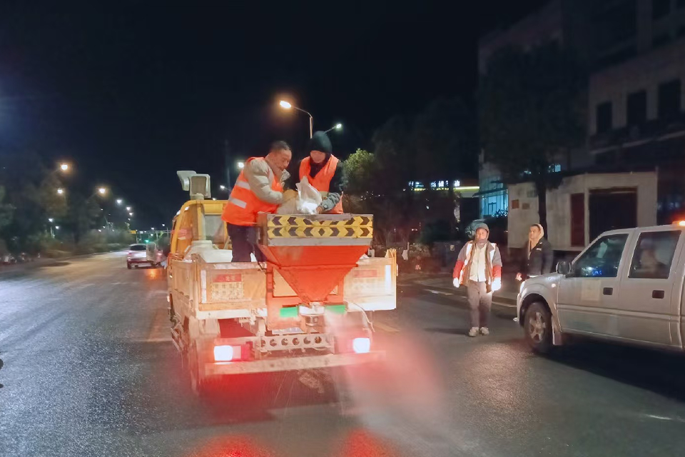 受强冷空气持续影响,都匀经济开发区出现雨雪凝冻现象,对道路交通、安全生产带来一定影响。近日,都匀经济开发区坚持“早谋划、早部署、早行动”,迅速启动凝冻灾害应急响应,及时出动人力、物力、机械设备等,对全区主干道、交通节点、桥梁隧道、项目企业、景区景点等进行巡查和撒盐除冰。同时,对全区易凝冻重点路段进行全天候、全覆盖巡查监测,全力保障辖区道路畅通。截至目前,共计组织党员队伍、交警、市政、保洁人员等200余人次,应急车辆4台,投入融雪盐11吨。